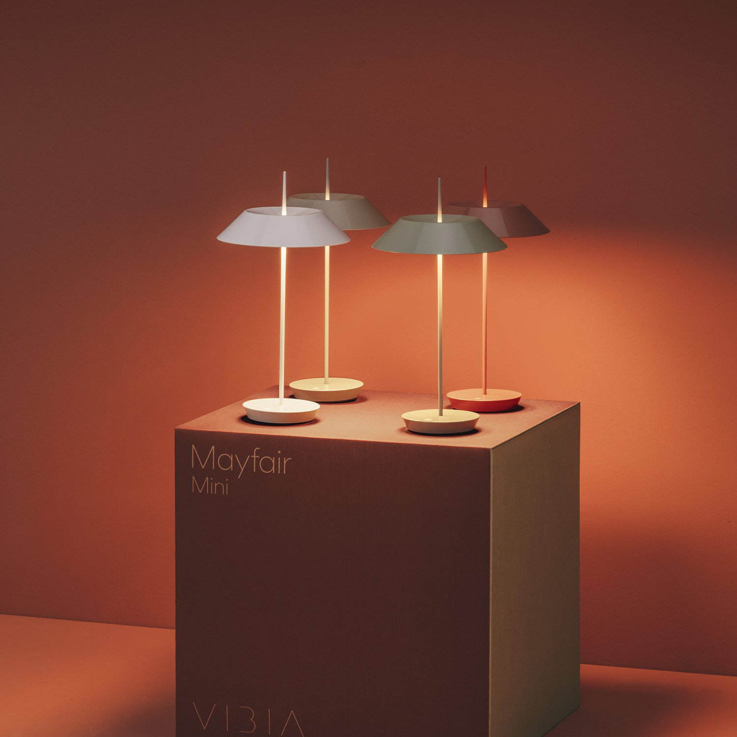 Diego Fortunato zaprojektował oprawy z rodziny Mayfair. Modele stołowe z tej serii emitują światło o barwie 2700K. Mayfair 5495 wykorzystuje czujnik dotyku do sterowania. Zestaw zawiera kabel USB-C o długości 1,20 m.